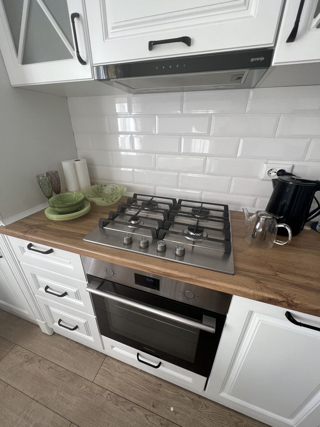 Уютная кухня в стиле прованс (варочная панель, духовка Samsung, вытяжка Gorenje)