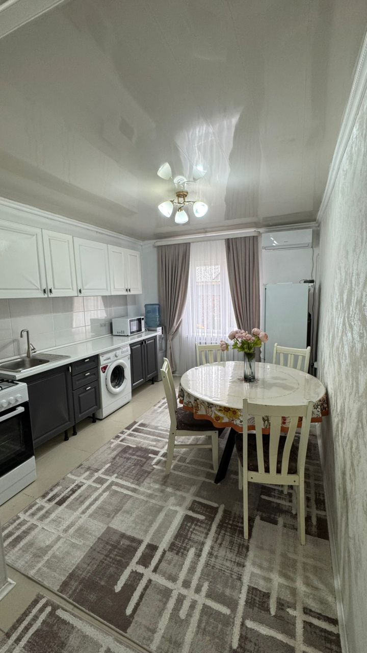 4 комнаты: 2 спальни с новой мебелью, кабинет со всей техникой (ПК, МФУ, кресло), уютная гостиная, современная кухня