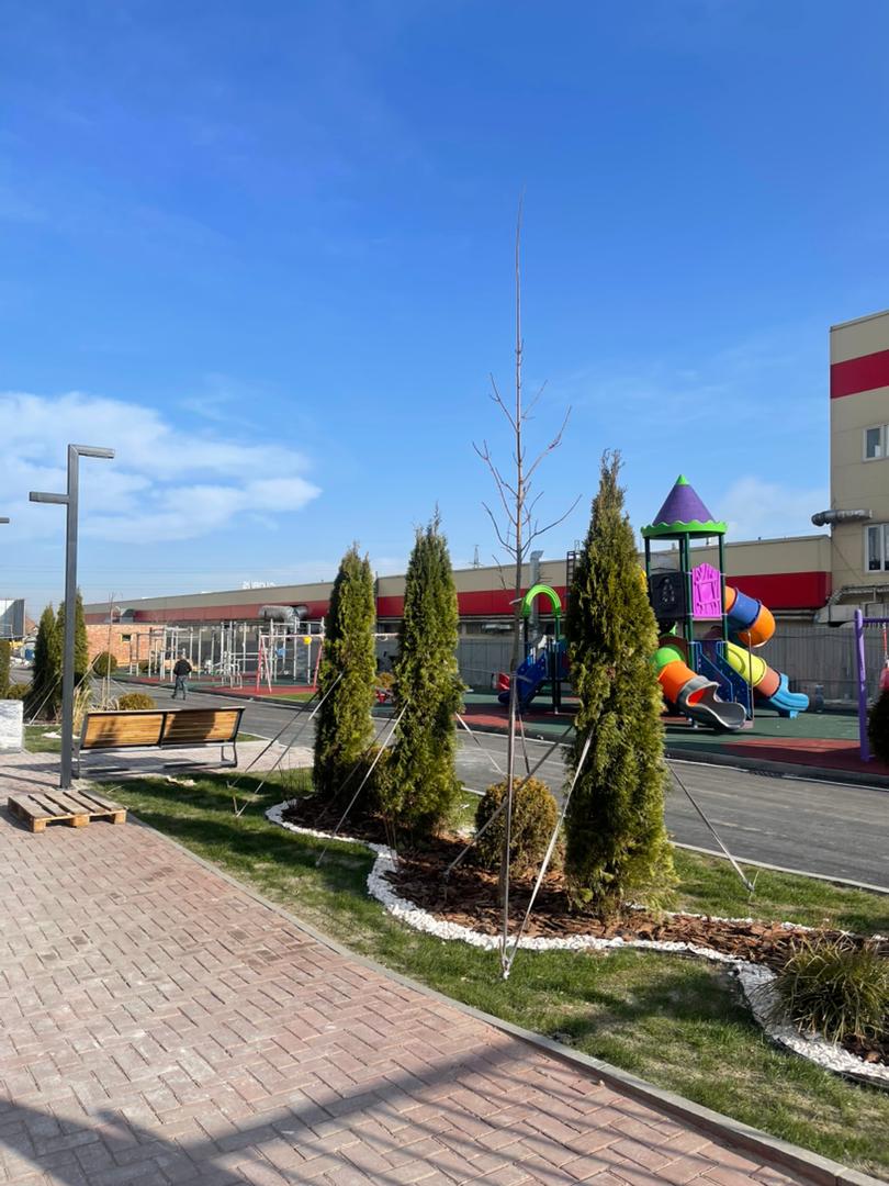 Отличная локация — рядом ТЦ, школы, детские сады, удобный выезд и транспортная развязка.