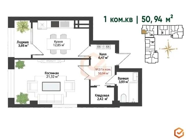 📐 Площадь: 50,99 м²