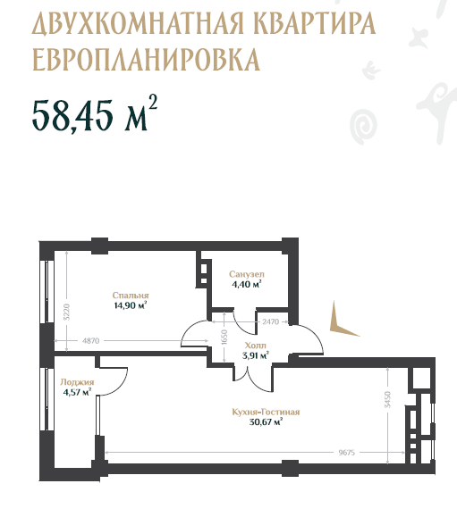 Размер объекта: 58.45 м2