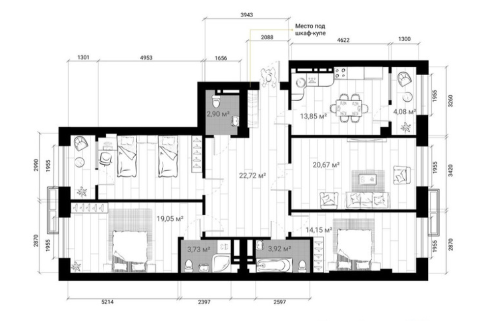 Шикарная планировка с большим залом!!!