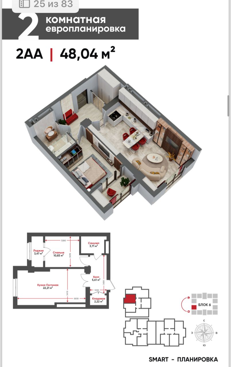 📐Площадь: 48м2