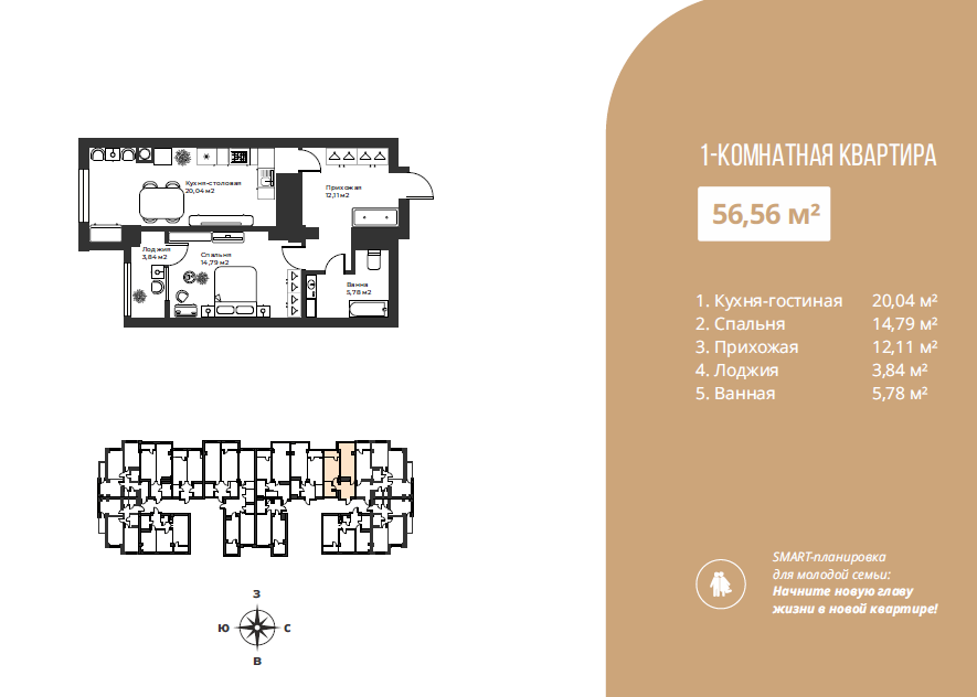 Площадь: 56,5 м2