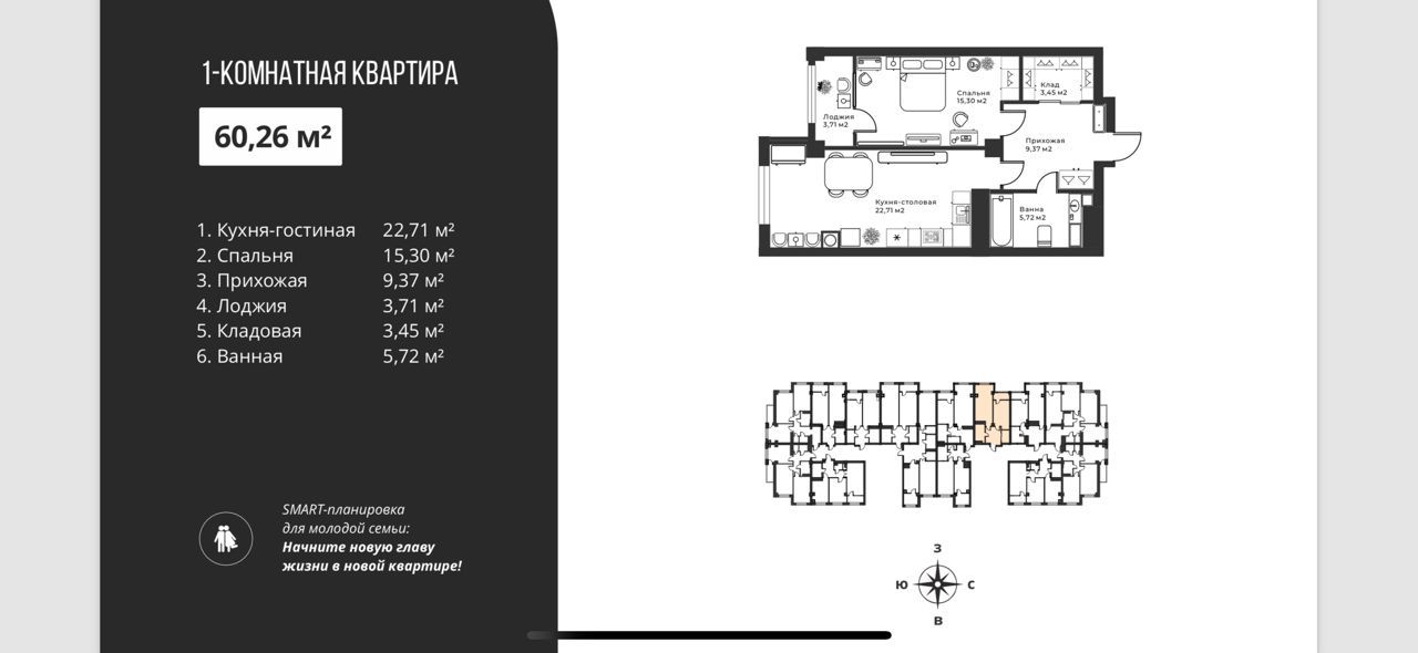 🏢 Площадь квартиры: 60.26 м²