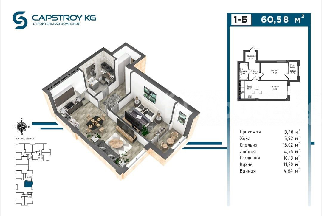 Площадь:62 м2