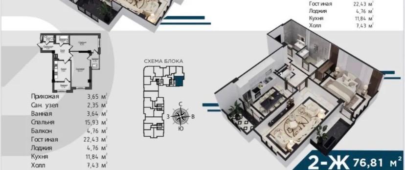 📐 Площадь: 76 м²